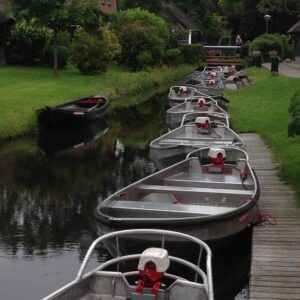 An der Dorfgracht bei Mol Groenewegen sind Elektroboote, E-Schaluppen, Kanus und Stechkähne zu mieten. Machen Sie eine Bootstour in Giethoorn und durch den Nationalpark Weerribben-Wieden.