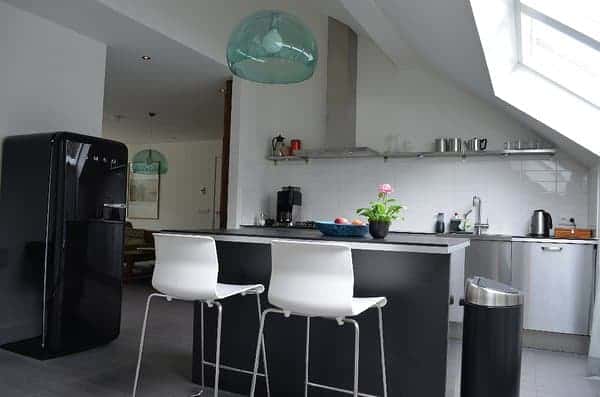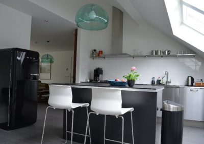 Das Appartement verfügt über einen großen Wohnraum mit bequemer Möbeln, eine komplett ausgestattete, offene Küche mit Kombiofen, Kühlschrank mit integriertem Tiefkühlfach, Gasherd mit fünf Kochstellen, Kaffeemaschine, Wasserkocher, Geschirrspüler und Kücheninsel mit Arbeitsfläche usw.